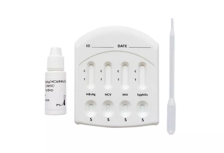 комбинированный тест для выявления HBsAg вируса гепатита В, антител к вирусу гепатита С, ВИЧ, возбудителя сифилиса